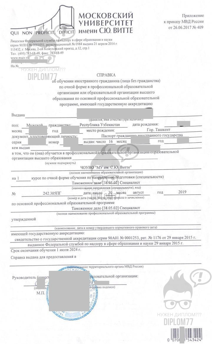 Полное официальное наименование документа — Справка об обучении иностранного гражданина (лица без гражданства) по очной форме в профессиональной образовательной организации или образовательной организации высшего образования по основной профессиональной образовательной программе, имеющей государственную аккредитацию. Купить справку об обучении иностранного гражданина в России проще чем получить в ВУЗе.