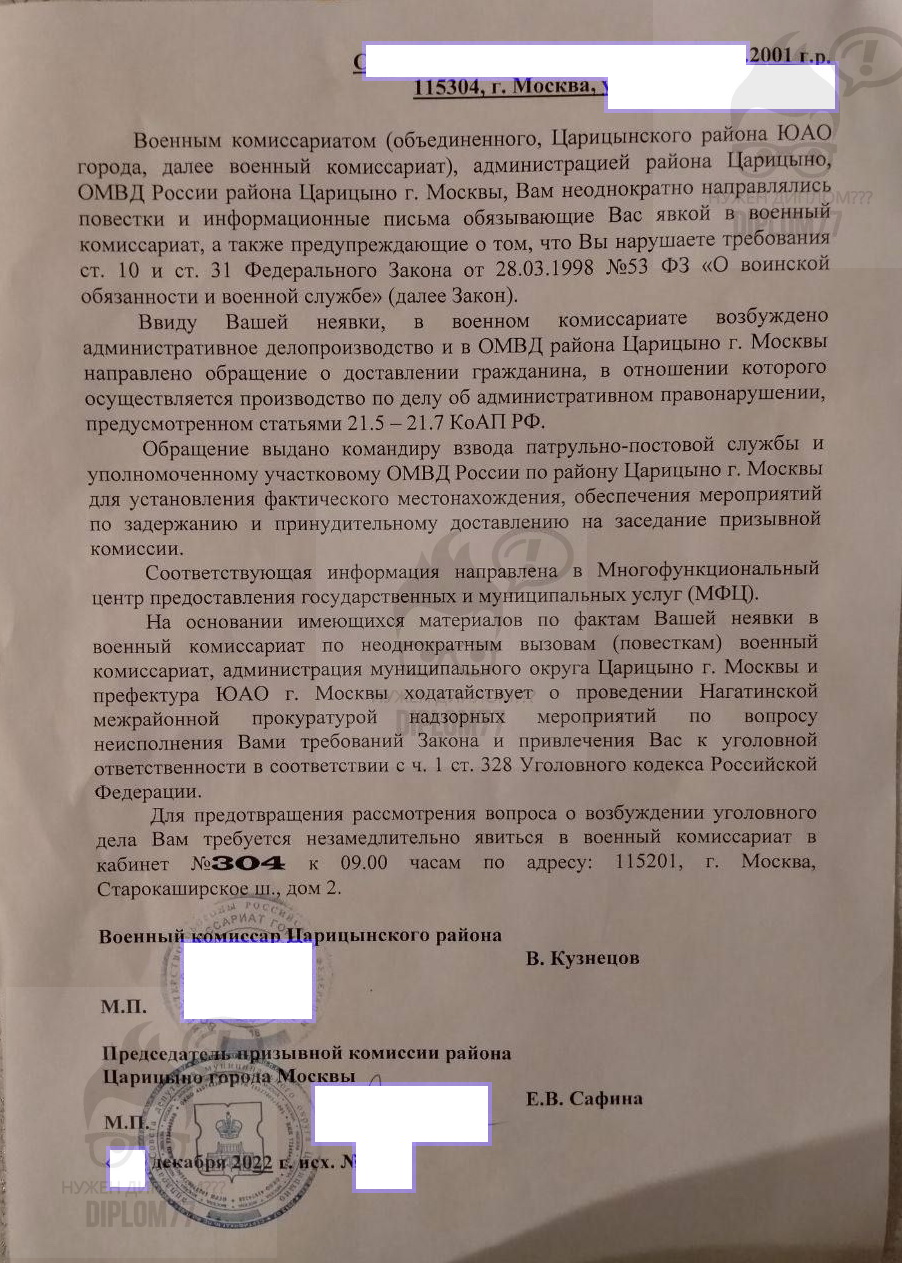Вопрос: Нужна повестка в военкомат